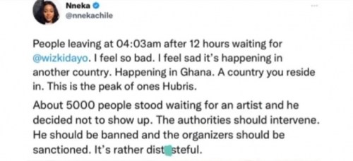 Their hopes got shattered after they waited for 12 hours to no avail. They had no choice but to angrily leave the venue. Some have opined that Wizkid should be banned, while the organizers of the show sanctioned.