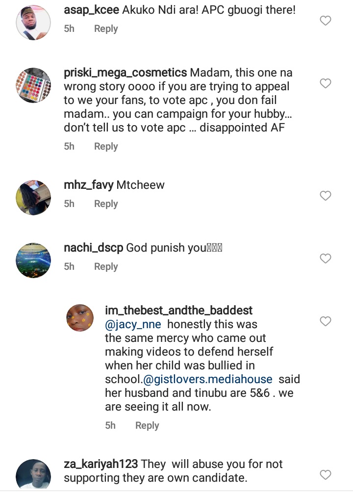Nigerians have lashed out at actress, Mercy Johnson after she showed support for the ruling All Progressives Congress.